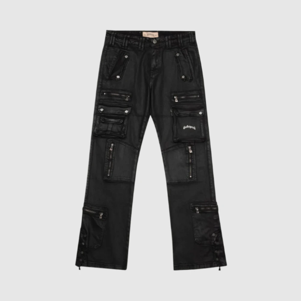 The Godspeed Black Denim Cargo Pants for men are built for movement, function, and standout style. Designed with a strong streetwear influence, these pants combine the rugged look of denim with the utility of classic cargo design.Godspeed Black Denim Cargo Pants Mens.