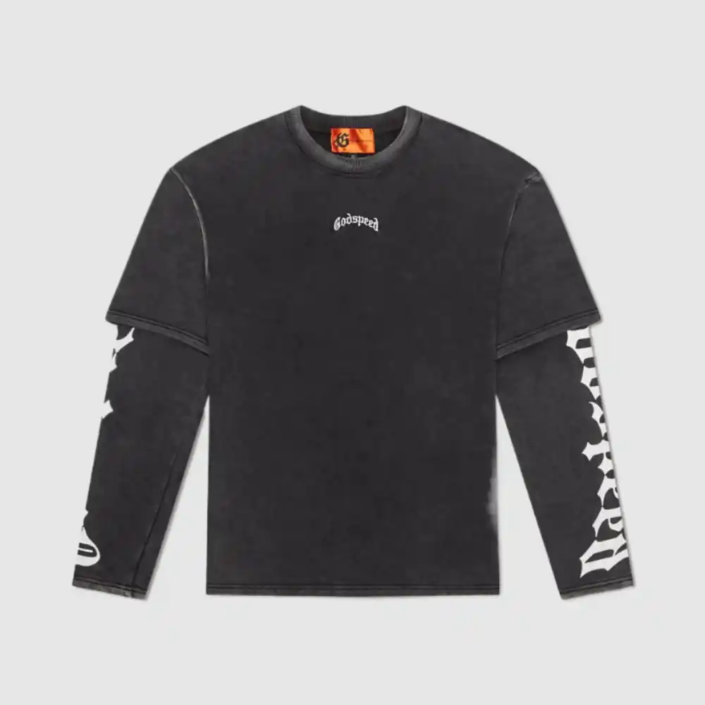 People searching for long sleeves with a layered look, streetwear long sleeve tees, or oversized street t shirts will find this one useful. It matches well with other pieces in our tops, pants, and accessories collections.Godspeed Double Layer Long Sleeve T Shirt.