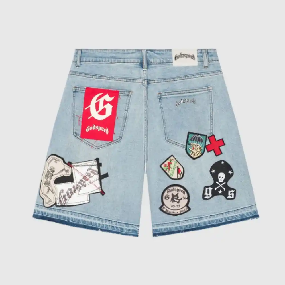 Godspeed Patchwork Denim Shorts – Mixed Design, Easy Fit