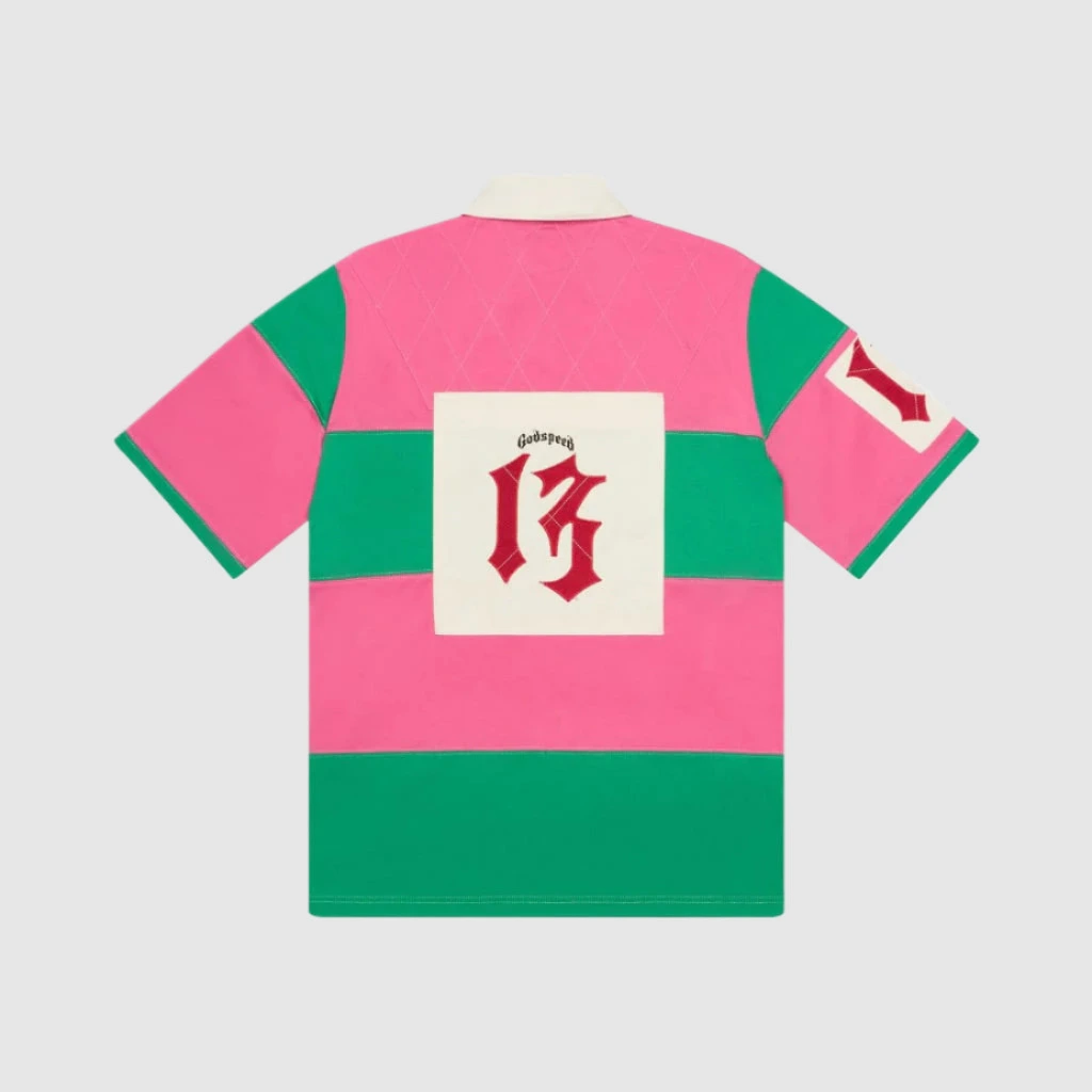 The Godspeed Pink and Green Shirt blends simple design with bold contrast. It’s a short sleeve tee built from soft cotton. The colors speak for themselves—clean pink with a solid green block. This piece fits in with the rest of our Godspeed Graphic Tees.