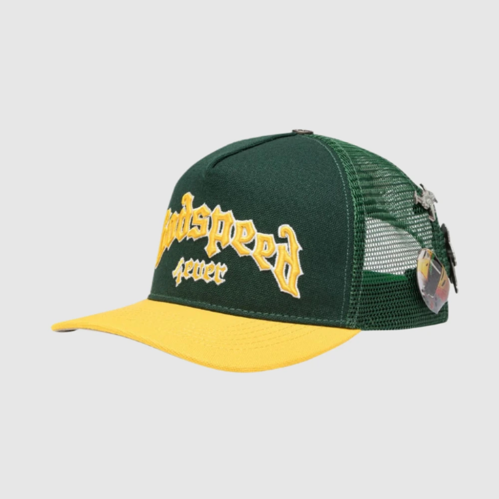 This hat mixes yellow and green without being loud. The colors are solid and balanced, which makes it easy to match with basics or layered fits. If you wear Godspeed Shirts, this hat adds a pop of contrast. Or you can match it with OG Denim Hoodies or a Godspeed Beanie on colder days.